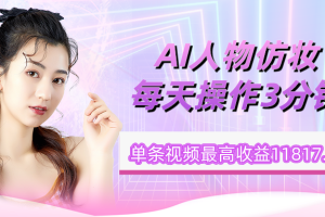 1个学员AI人物仿妆,每天操作3分钟,单条视频最高收益11817.09元?